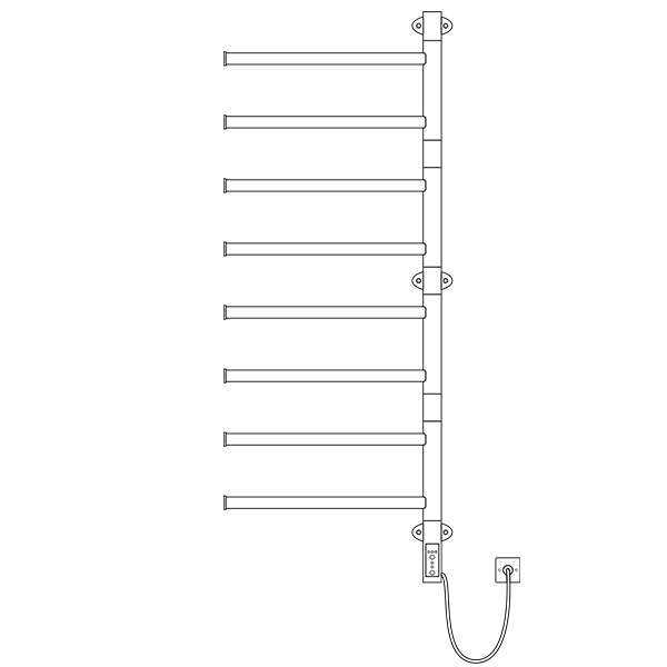 Den här specialdesignade enheten är för anslutning av den elektriska torken till strömförsörjningen och du behöver inte längre välja vänster eller höger anslutning, eftersom kontaktdonet är placerat på båda vertikala rören.